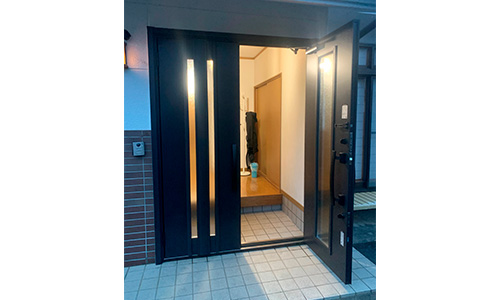 引き違いから両開きといった全く違うタイプの玄関ドアに交換できます。